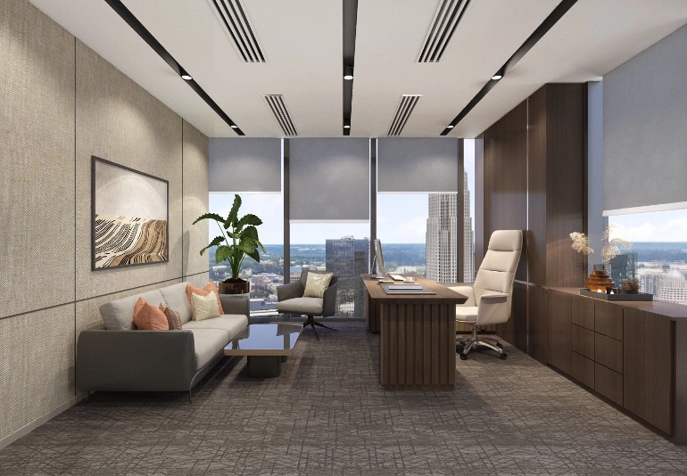 Nội thất văn phòng mang phong cách tối giản nhưng tinh tế, với các vật liệu cao cấp và màu sắc trung tính, mang đến sự chuyên nghiệp và thoải mái. Hệ thống chiếu sáng và thông gió được bố trí khoa học, tạo ra một môi trường làm việc trong lành, đảm bảo sức khỏe và sự thoải mái cho tất cả nhân viên. Công nghệ tiên tiến được tích hợp để hỗ trợ quy trình làm việc hiệu quả, đáp ứng nhu cầu phát triển và sáng tạo của doanh nghiệp.