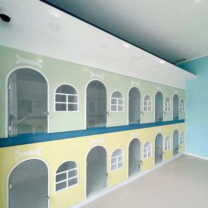 Nội thất của Pet Shop sử dụng các vật liệu bền vững và dễ vệ sinh, kết hợp với màu sắc tươi sáng và họa tiết vui nhộn, tạo nên một bầu không khí thân thiện và ấm cúng. Hệ thống ánh sáng được thiết kế để làm nổi bật các sản phẩm và dịch vụ, đồng thời tạo cảm giác dễ chịu cho cả khách hàng và thú cưng. Tất cả các yếu tố đều được cân nhắc kỹ lưỡng để mang đến một trải nghiệm mua sắm tiện lợi, dễ chịu và vui vẻ cho người yêu thú cưng.